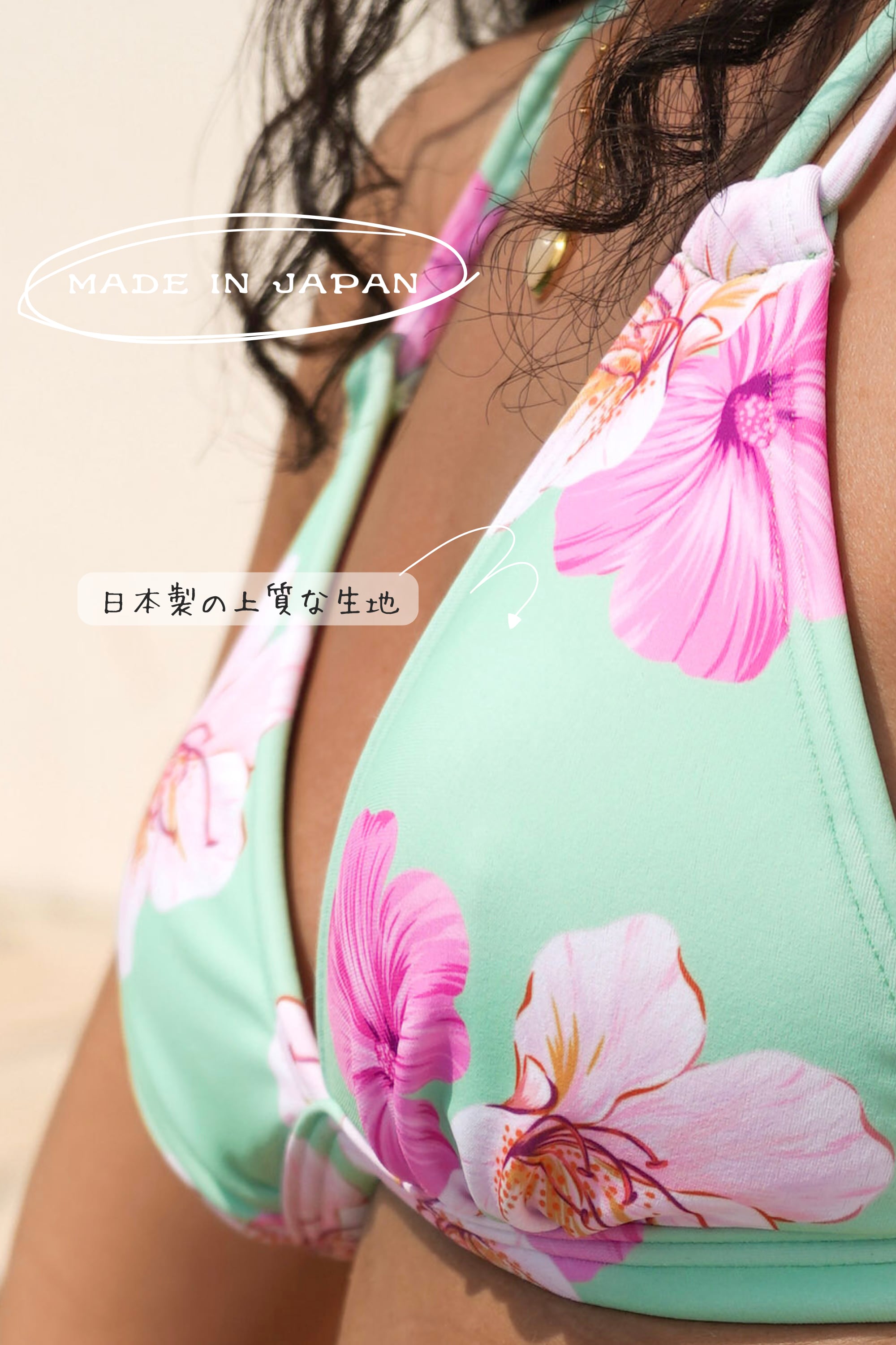 海に入るときの、少し高まる気持ち。ハイビスカス柄は、その開放感をBAREIAらしい色味で表現しました。
